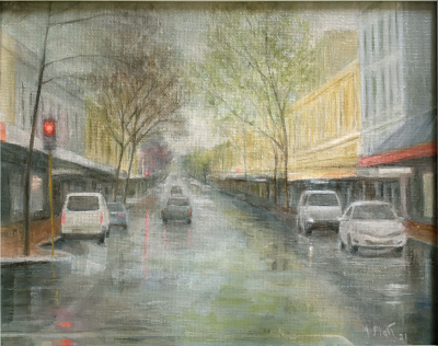 Town and the people there going about their day is inspirational for me. Ordinary scenes, but so often something of interest - in the buildings, the frozen moments of someone on the phone, buying lunch, crossing the road, shopping, rainy scenes, umbrellas, people hurrying.